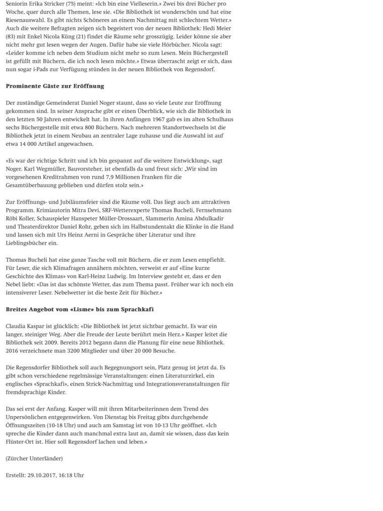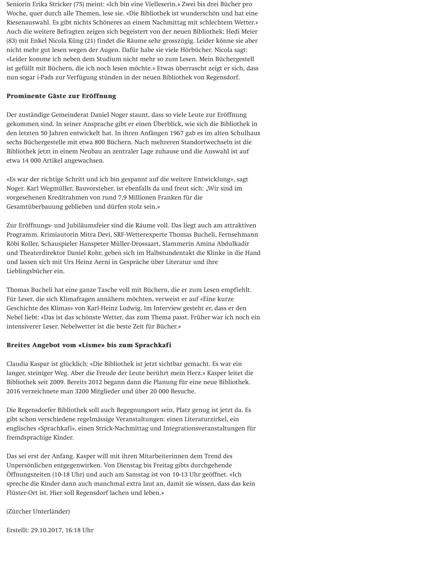 Einweihung Bibliothek Regensdorf im Zürcher Unterländer
