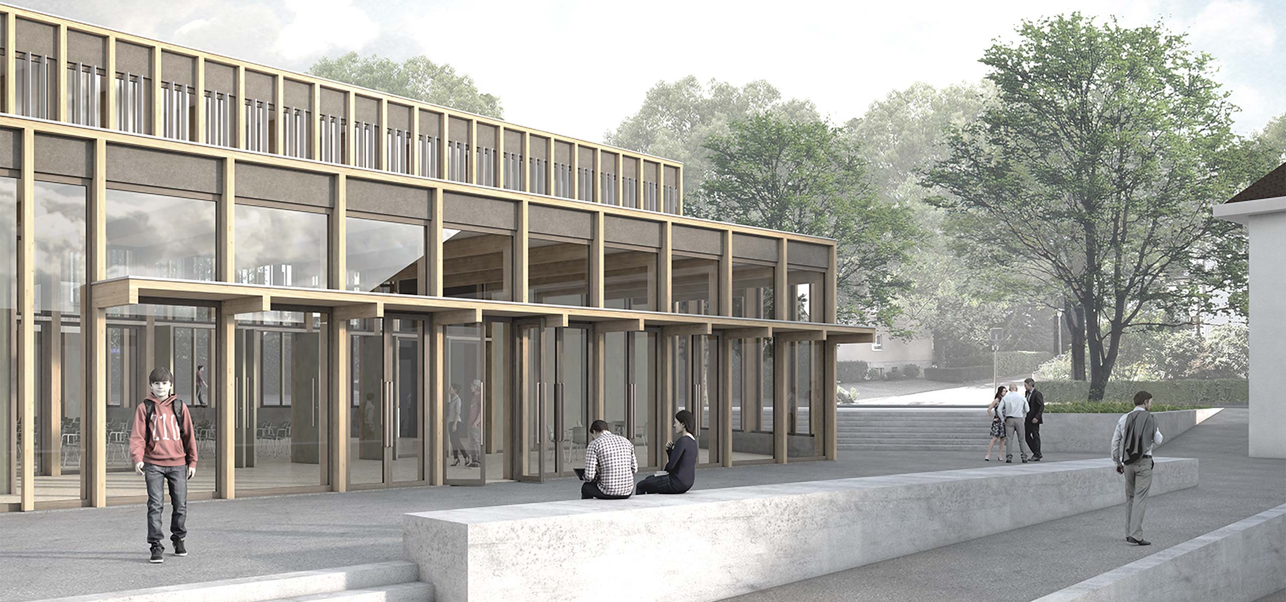 Die Schulanlage wird durch zwei dreigeschossige Bauten erweitert, welche sich in Dimension und Setzung an den bestehenden Bauten orientieren und einen neuen Pausenplatz aufspannen.