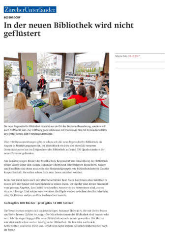 Zur Eröffnungsfeier der neuen Bibliothek Regensdorf veröffentlicht Zürcher Unterländer einen interessanten Beitrag.